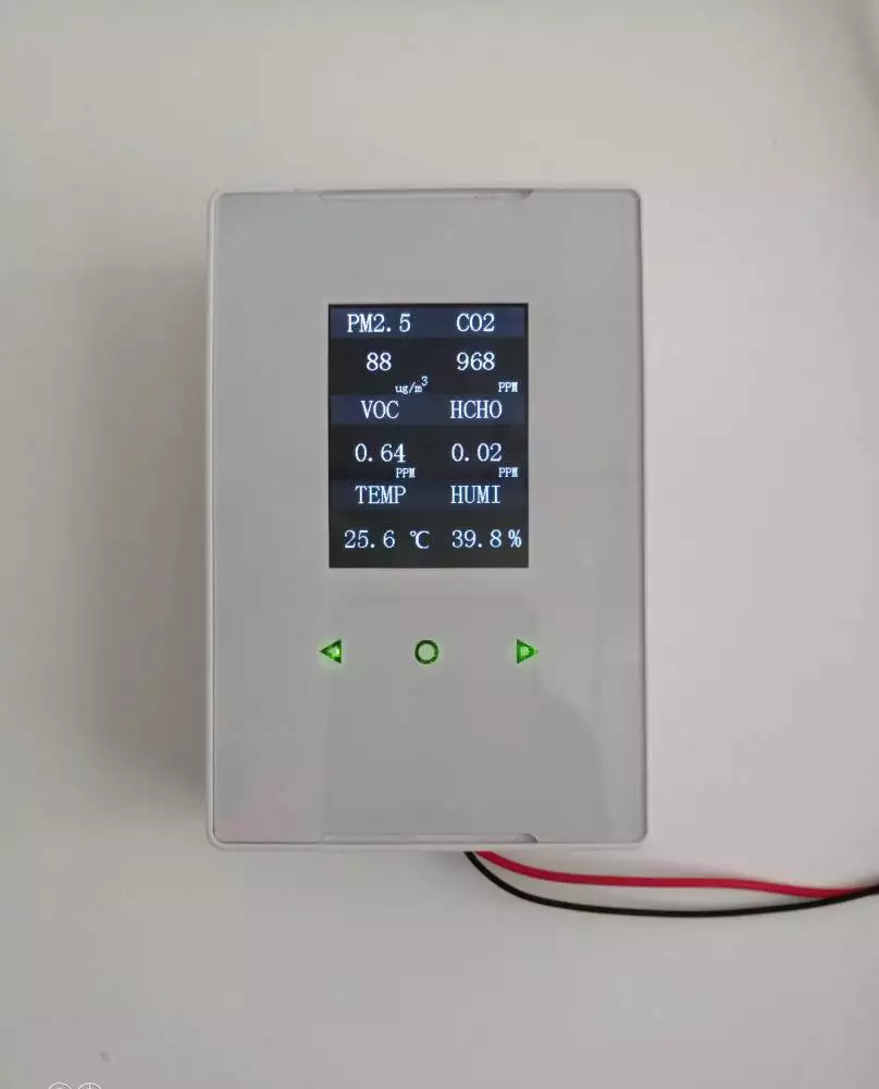 3.液晶实时显示温度、湿度、PM2.5、CO2、甲醛、CO等。